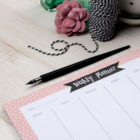 However you use it, this pretty pink and black pen and ink ÔInky FloralÕ weekly planner should bring bit of elegance to your admin. And when youÕre done - just tear off the weekly sheet and start afresh. As there are no dates printed, you can start using it any time of the year.