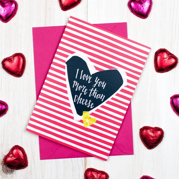 Perfect for a tongue in cheek, funny Valentine's card. And for the rest of the year, 'Love You More Than Cheese' is great for anniversaries or as a romantic note card to show you care.