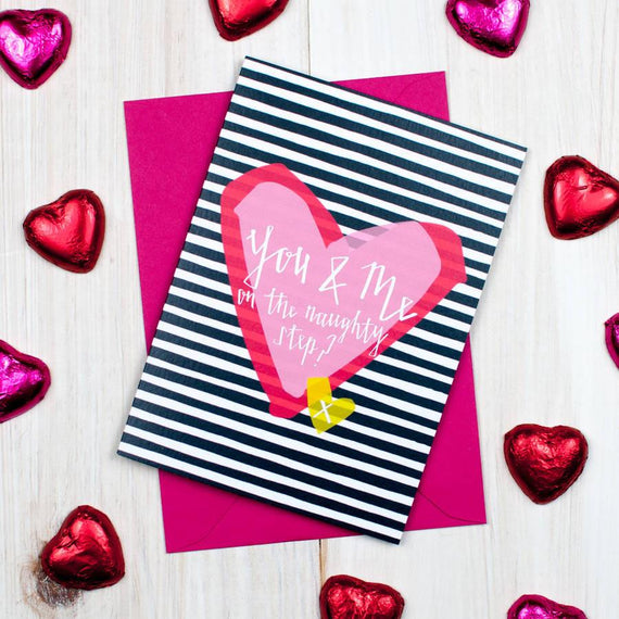 Perfect for a tongue in cheek, funny Valentine card. And for the rest of the year, On The Naughty Step is great for anniversaries or as a romantic note card to show you care.