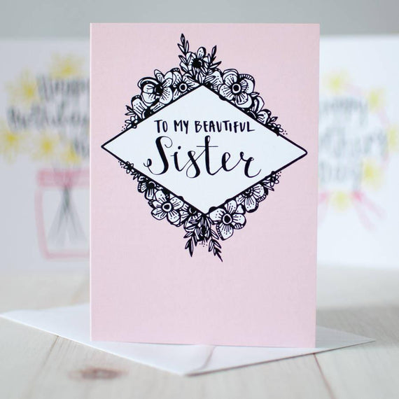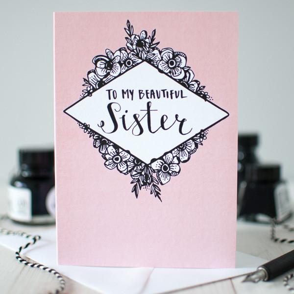 Our 'To My Beautiful Sister' card is blank inside for your own message.