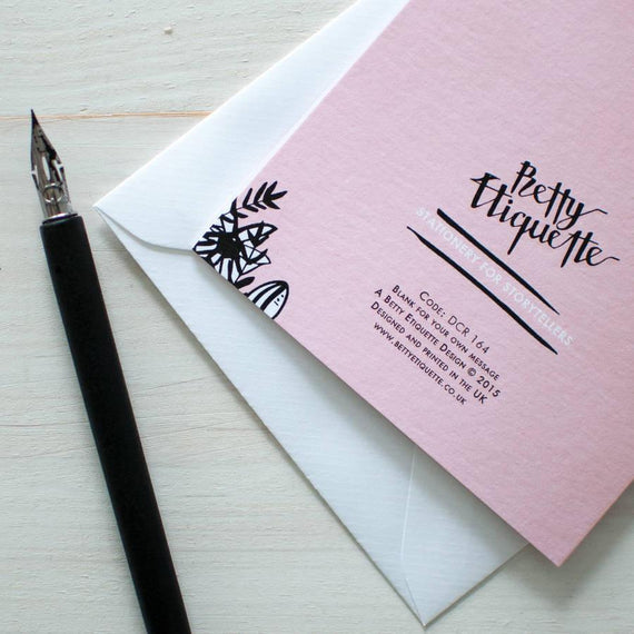 This card will be a treat for your sister. In a pretty shade of pink, it's illustrated front and back with free-hand design, inspired by modern calligraphy and printed on high-quality textured card. It comes with a white textured envelope for a crisp, fresh finish.