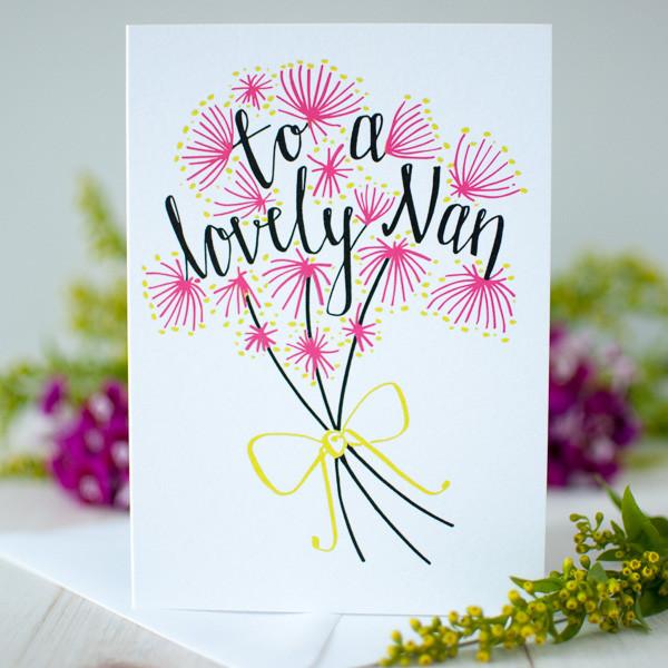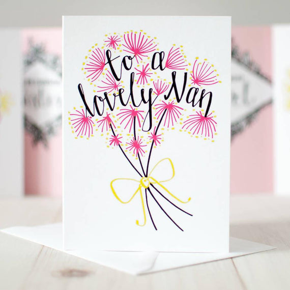 The floral motif has a message reading 'To A Lovely Nan' so it's ideal as a birthday card, Mother's Day card, thank you card or everyday note card to remind your Nan you care.