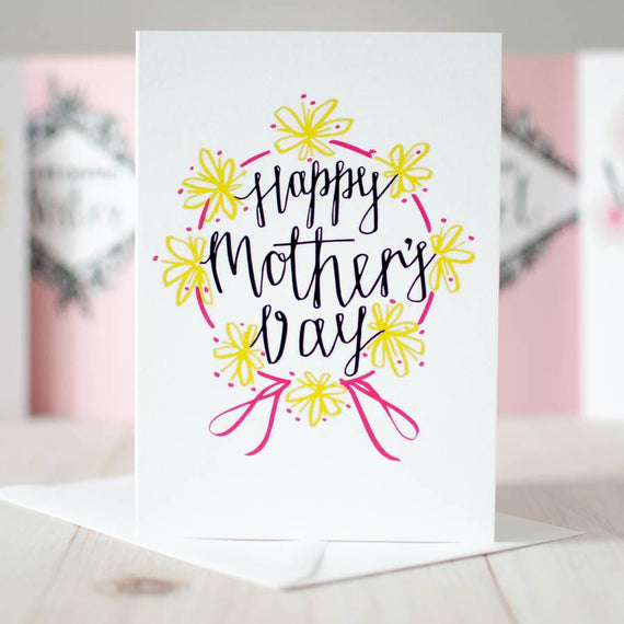This card is a treat for Mother's Day. In a pretty shade of pink and green, it's illustrated front and back with free-hand design, inspired by modern calligraphy and printed on high-quality textured card. It comes with a white textured envelope for a crisp, fresh finish.
