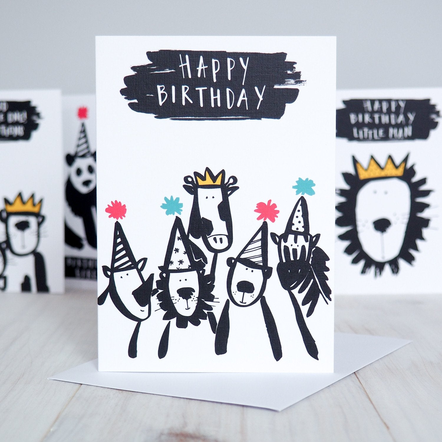 Celebrate a very special little person's birthday with this snappy Party Animal birthday card created by Rebecca Cahill Roots at Betty Etiquette.